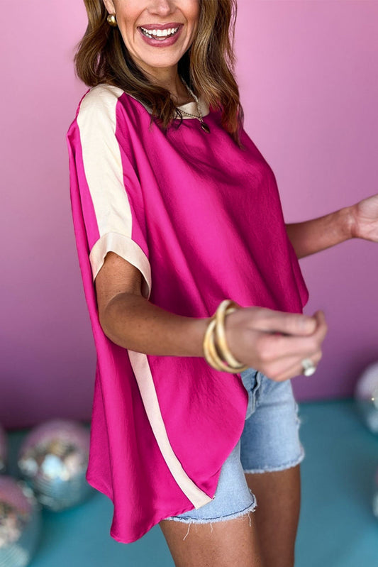 Rose Red Contrast Trim V Neck T-shirt Dress