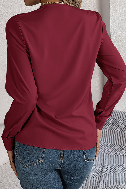 Red Dahlia Elegant V-Neck Pleated Blouse