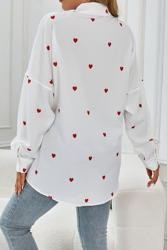 White Glitter Heart Print Corded Graphic Pullover Sweatshirt